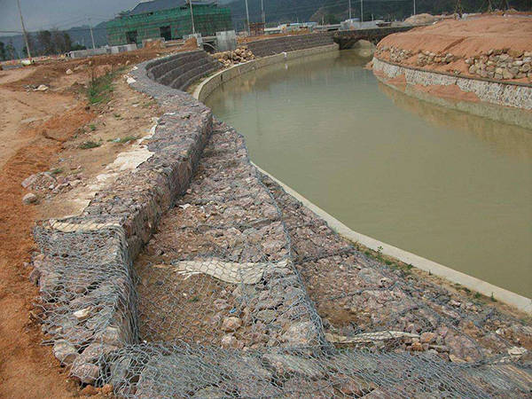 鋪設了帶有石籠網保護設施的擋土墻。籠子中的填充物疏松,有許多孔,有利于邊坡防護和砌筑后的填充,有利于土壤中孔隙水的排泄。地表水一旦滲透到土壤中,便可以通過砌體快速排出,有效地降低了地下水位,然后降低了墻后和斜坡下的地下水壓力。用于河道治理的石籠網的布置在滑坡管理和泥石流防治項目中,及時排水以減少墻體破壞的可能性。